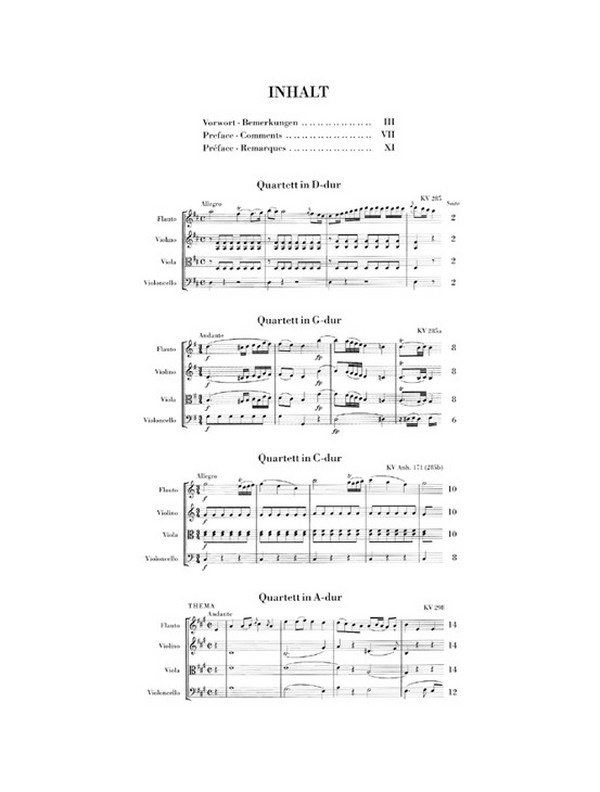| Untertitel: | für Flöte, Violine, Viola und Violoncello Stimmen |