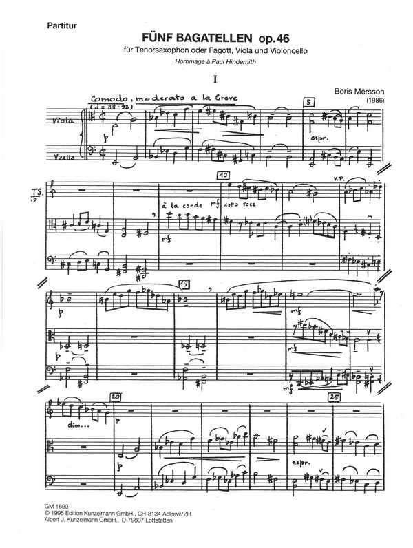 | Untertitel: | für Tenorsaxophon (Fagott), Viola und Violoncello Partitur |