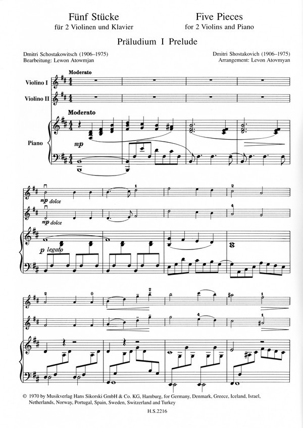 Atowmjan, Lewon, arr. Präludium aus der Musik zum Film Hornisse op.97 Gavotte. Nr.2 aus der 3. Ballettsuite Elegie. Nr.4 aus der 3. Ballettsuite Walzer Polka. Nr.4 aus der 1. Ballettsuite