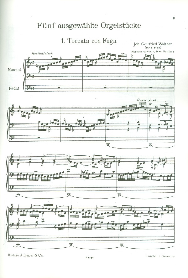 Organum 4,15 Toccata con fuga Preludio con fuga Concerto Alcuni variazioni sopra un bc di Corelli Concerto del si. Telemann appropriato all'organ