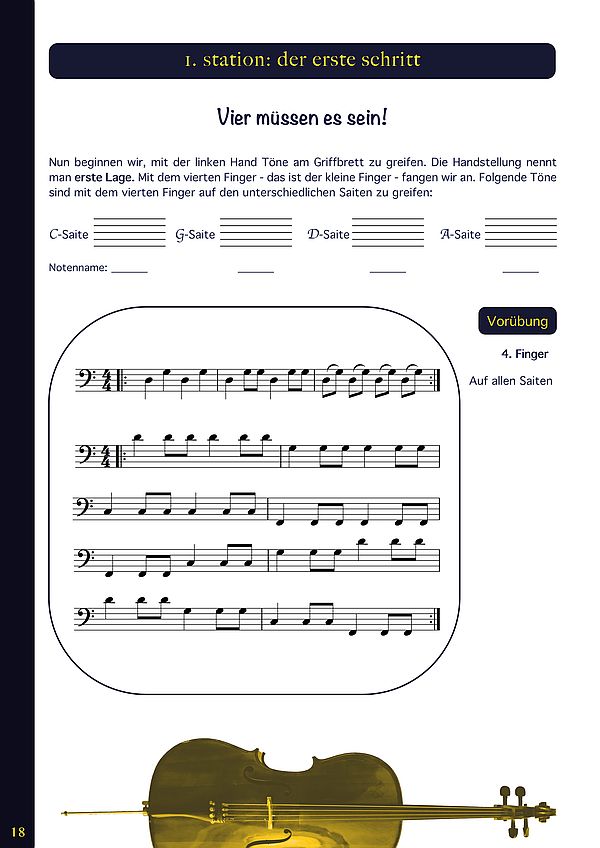 5 erste Stationen zum Violoncellospiel (+QR-Codes)