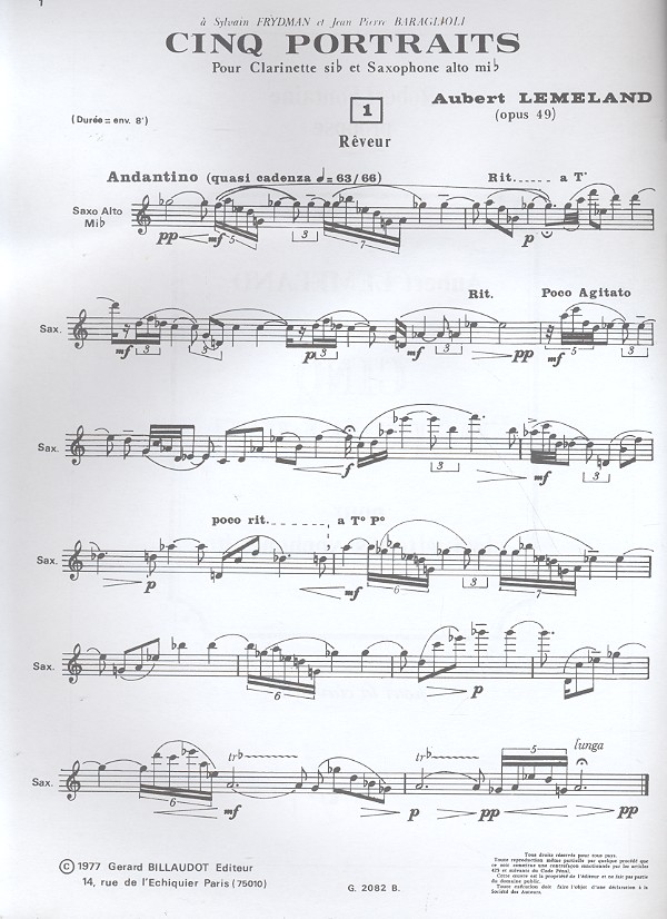| Untertitel: | et saxophone alto |