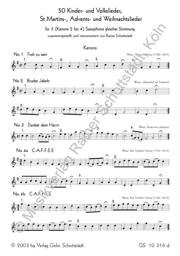 | Untertitel: | für 3 (Kanons 2-4) Saxophone gleicher Stimmung 2 Spielpartituren |