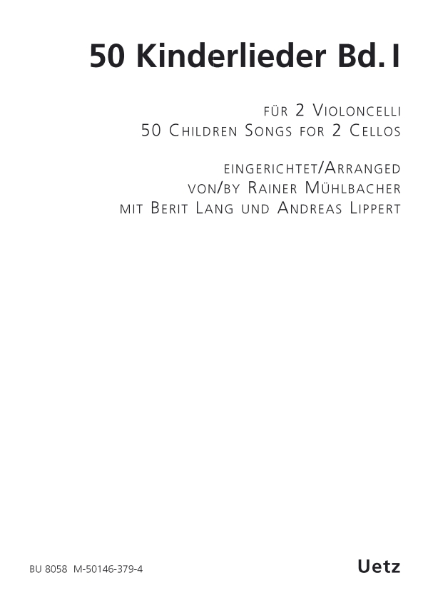Mühlbacher, Rainer, arr. 50 Children Songs Der Kuckuck und der Esel Der Mond ist aufgegangen Auf unsrer Wiese gehet was In einem kleinen Apfel Ein Schneider fing 'ne Maus Zeigt her eure Füße Hopp hopp hopp Schön ist die Welt Schlaf Kindlein schlaf Es sungen drei Engel Petersil und Suppenkraut Wir wünschen Frieden euch allen Die Gedanken sind frei Ri-ra-rutsch Bald gras ich am Neckar Zwischen Berg und tiefem Tal Jetzt Fahrn wir übern See Taler Taler du musst wandern Dornröschen Hänsel und Gretel Es waren zwei Königskinder Brüderchen komm tanz mit mir Laurenzia Ein Männlein steht im Walde Mein Hut der hat drei Ecken Es war eine Mutter