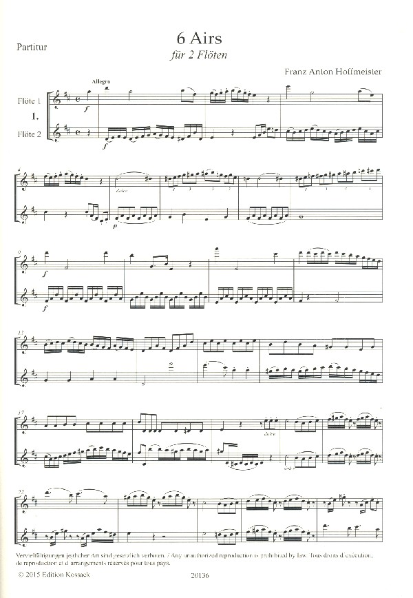 | Untertitel: | für 2 Flöten Partitur und Stimmen |