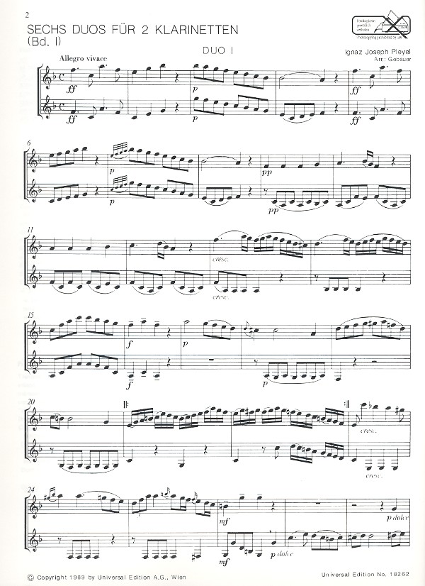| Untertitel: | für 2 Klarinetten |