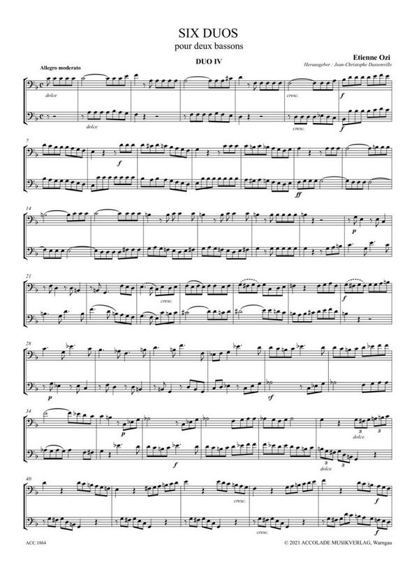 Dassonville, Jean-Christophe, ed Duo Nr. 4 F-Dur 1. Allegro moderato 2. Menuet Duo Nr. 5 C-Dur 1. Allegro 2. Rondeau. Allegretto Duo Nr. 6 G-Dur 1. Andantino 2. Rondeau. Grazioso