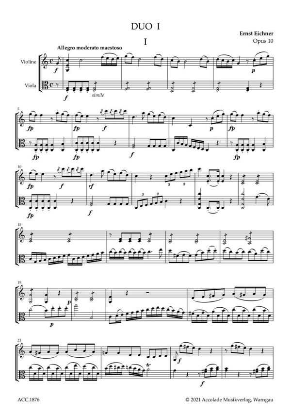 Koenigsbeck, Bodo, ed Duo Nr. 1 C-Dur 1. Allegro moderato maestoso 2. Rondo. Andantino Duo Nr. 2 D-Dur 1. Allegro moderato 2. Rondo. Allegro Duo Nr. 3 G-Dur 1. Allegro molto 2. Rondo (Allegro)