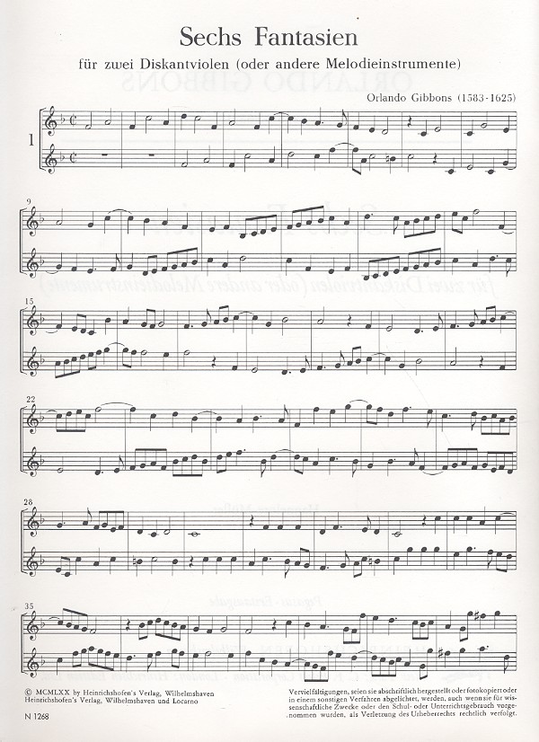 | Untertitel: | für 2 Diskantviolen (oder andere Melodieinstrumente) Spielpartitur |