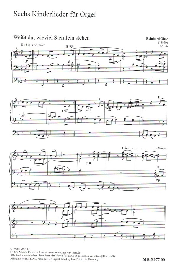 Produktinformationen "6 Kinderlieder-Orgelstücke op.66"
