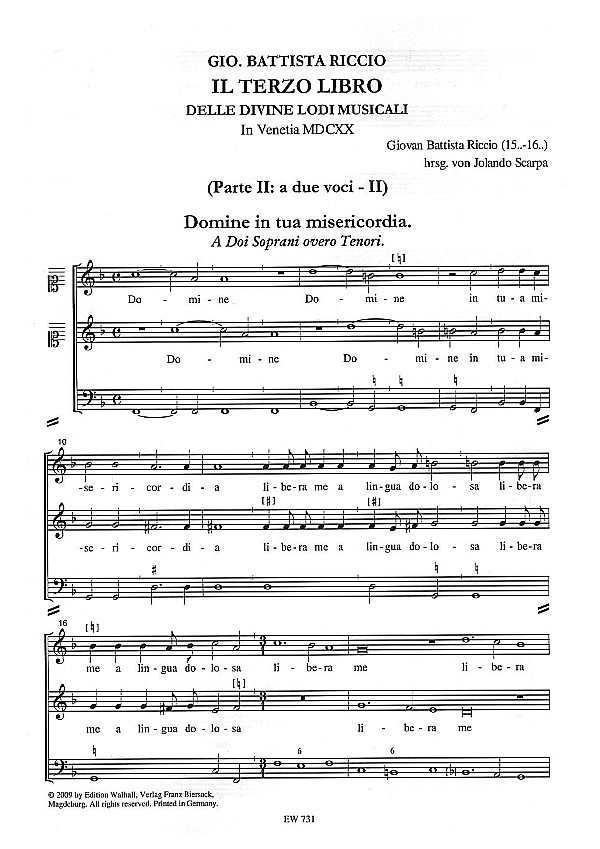 | Untertitel: | für 2 Singstimmen und Bc 3 Partituren und Stimmen (Bc nicht ausgesetzt) |