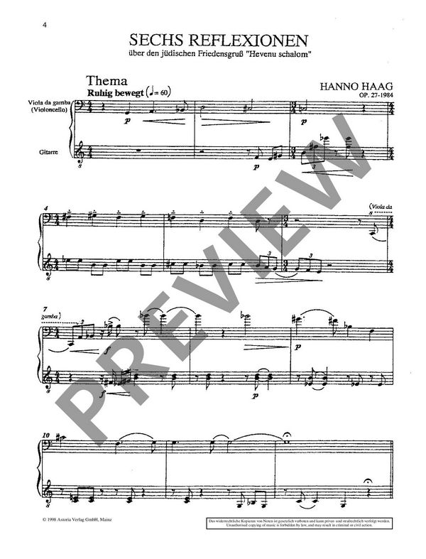 Produktinformationen "6 Reflexionen op.27 über 'Hevenu Schalom'"