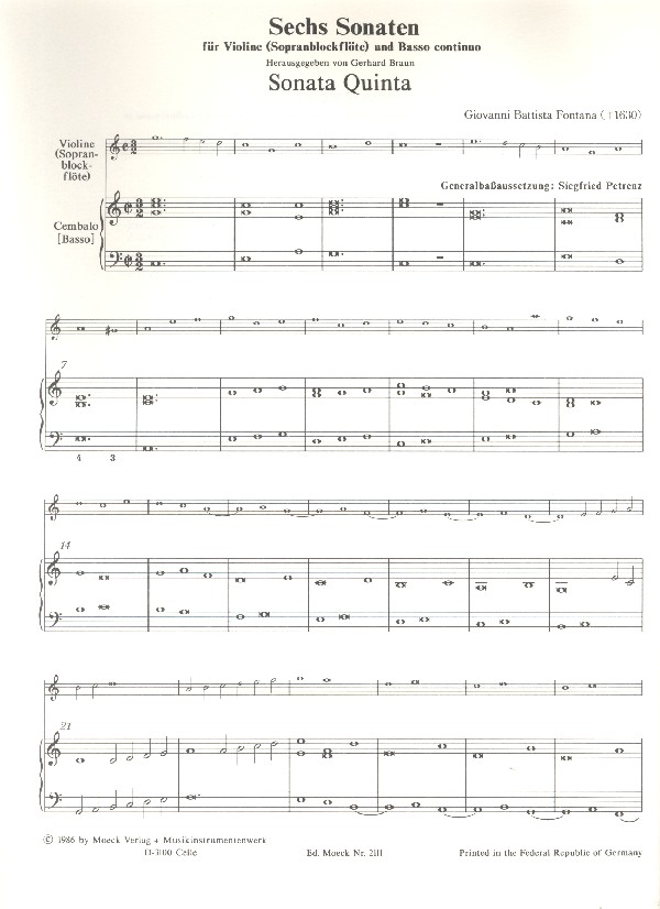 | Untertitel: | für Violine (Sopranblockflöte) und Bc |