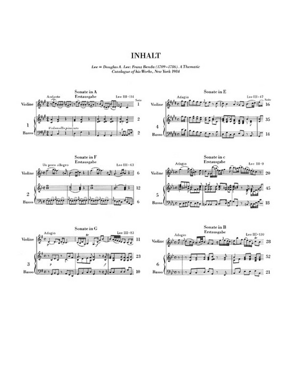 Röhrig, Karl, Einrichtung Violine. Gerlach, Sonja. ed Sonate A-Dur Lee III-114 Sonate F-Dur LEe III-63 Sonate G-Dur Lee III-83 Sonate E-Dur Lee III-47 Sonate c-Moll Lee III-9 Sonate B-Dur Lee III-130