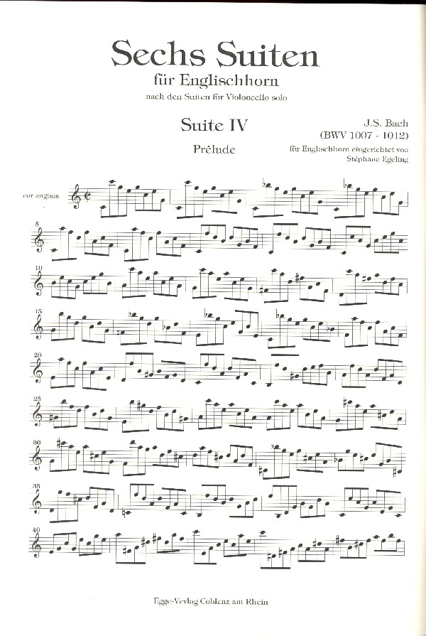 Egeling, St., Bearb. nach den Suiten BWV1007-1012 für Violoncello solo BWV1010 BWV1011 BWV1012