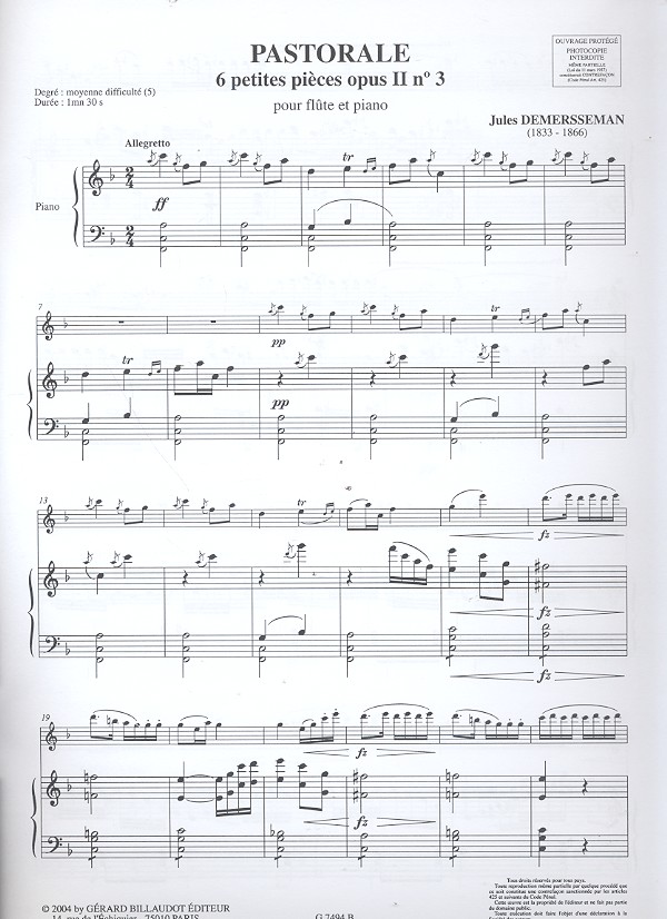 | Untertitel: | pour flûte et piano pastorale |