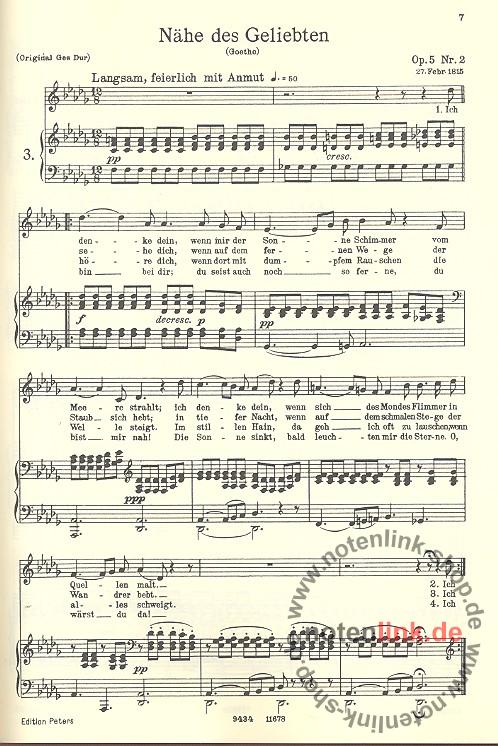 An die Musik D547 Sängers Morgenlied D163 Nähe des Geliebten D162 Liebesrausch D179 Die Mainacht D194 Liebeständelei D206 Seufzer D198 Meeres Stille D216 Erster Verlust D226 Ariette der Claudine D239/6 Tischlied D234 An den Mond D259 Heidenröslein D257 Der Rattenfänger D255 Wonne der Wehmut D260 Cora an die Sonne D263 Tischlied D274 Liebhaber in allen Gestalten D558 Losse, Paul, ed An den Frühling D283 Das gestörte Glück D309 Harfenspieler D325 Hoffnung D295 Schweizerlied D559 Der Schmetterling D633 Frühlingslied D398 Winterlied D401 Blumenlied D431 Seligkeit D433 Erntelied D434 Das Heimweh D456 Aus Diego Manazares D458 Herbstlied D502 Wiegenlied D498 Abendlied D499 An die Nachtigall D497 An eine Quelle D530 Lebenslied D508 An mein Klavier D342 Leiden der Trennung D509 Lied eines Schiffer an die Dioskuren D360 Lied der Mignon D359 La pastorella D528 Täglich zu singen D533 Hänflings Liebeswerbung D552 Das Mädchen D652 Der Knabe D692 Geheimes D719 Mignon 1 D726 An die Entfernte D765 Am Flusse D766 Im Haine D738 Die Liebe hat gelogen D751 Wanderers Nachtlied D768 Schwanengesang D744 Lachen und Weinen D777 Wehmut D772 Der Wanderer an den Mond D870 An die Laute D905 Lebensmut D937 Abschied D578