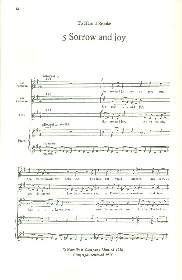 Say who is this O love i complain Angel spirits of sleep When first we met Sorrow and joy Love on my heart Assemble all ye maidens