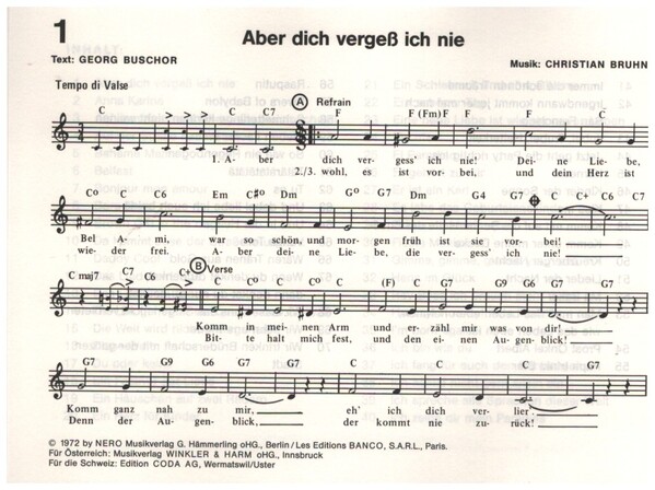 Aber dich vergeß ich nie Anna Karina Auf dem Karussell fahren alle gleich schnell Auf der Straße nach Süden Bahama Mama Belfast Bonjour mon amour Bora Bora Brown girl in the ring Da kommt Jose der Straßenmusikant Daddy Cool Das Lied der Liebe Das Lied vom Glück Die Uhr geht vor, du kannst noch bleiben Die Welt wird nicht untergehen Diese Welt Du oder keine Ein Festival der Liebe Ein Häuschen auf zwei Rädern Ein Herz für Kinder Ein Schlafsack und eine Gitarre Ein schöner Tag Eine neue Liebe ist wie ein neues Leben El Lute El Paradiso Er gehört zu mir Er ist ein Kerl Es lebe das Geburtstagskind Fahrende Musikanten Fiesta Mexicana Gimme, gimme, gimme your love Hans im Glück Hey Boss ich brauch mehr Geld Hooray! Hooray! It's a Holiday I'mborn again Ich bin wie du Ich fang für euch den Sonnenschein Ich schlaf nicht gern allein Ich spreche alle Sprachen dieser Welt Ich zeige dir mein Paradies Immer die schönen Träume Irgendwann kommt jeder mal nach San Franzisco Jubel, Trubel, Heiterkeit Jetzt geht die Party richtig los Karneval Kinder der Sonne Kiss me Komm mit auf die Sonnenseite der Straße Komm unter meine Decke Kreuzberger Nächte Lieder der Nacht Ma Baker Man muss das Leben eben nehmen wie das Leben eben ist Papa trinkt Bier Prost Onkel Albert Rasputin Rivers Of Babylon Schmetterlinge können nicht weinen Sieben Fässer Wein So wie ein Regenbogen Täterätätätätä Tu es Und dabei liebe ich euch beide Und in der Heimat Venga Toro Wären Tränen aus Gold Wenn du denkst du denkst dann denkst du nur du denkst Wir lassen uns das singen nicht verbieten Wir sehn uns wieder Wir trinken Brüderschaft mit der ganzen Stadt