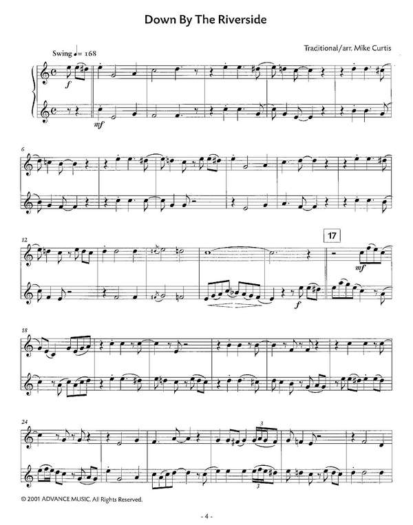 Down by the Riverside Little brown Jug Bill Bailey Pet o' my Heart A tisket a Tasket Take me out ot the Ballgame Nobody knows the Trouble I've seen Frankie and Johnny