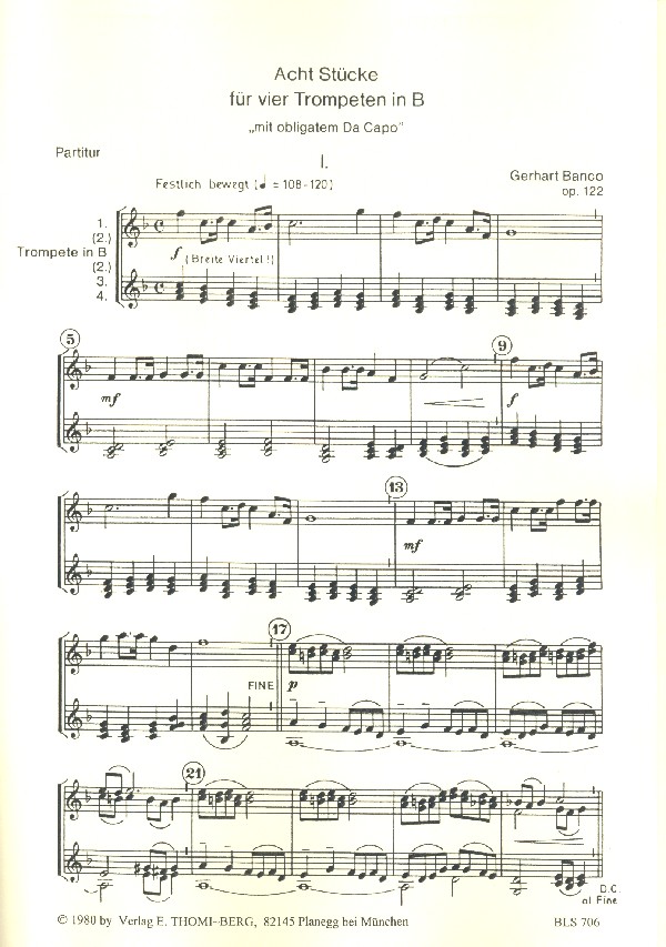 | Untertitel: | für 4 Trompeten in B Partitur und Stimmen |