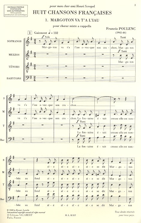 Margoton va t'a l'iau La belle se sied au pied de la tour Pilons l'orge Clic clac dansez sabots C'est la petit fill' du prince La belle si nous etions Ah mon beau laboureur Les tisserands Nr.4 u. 6 sind fuer maennerchor, rest fuer Gem chor !