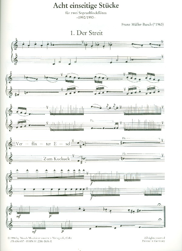 | Untertitel: | für 2 Sopranblockflöten Spielpartitur |