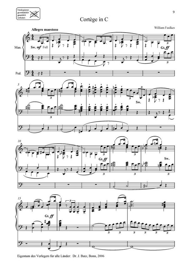Orgelmusik aus England und Amerika Band 17 Geffert, Johannes, ed Zuleger, Tobias, ed Grand Choeur G major Cortège C major Fanfare E flat major Grand Choeur E flat major Carillon C major Postlude A major Sortie A major Grand Choeur alla Händel