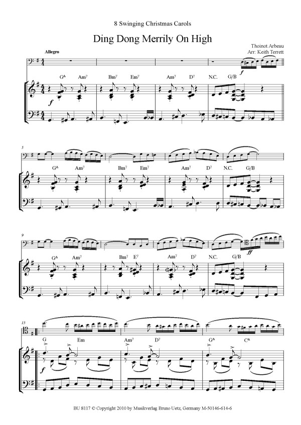 String Attack Terrett, Keith, arr. 8 swingende Weihnachtslieder Ding dong merrily on High Silent Night We three Kings Away in a Manger God rest Ye merry Gentlemen Deck the Halls Good King Wenceslas Joy to the World