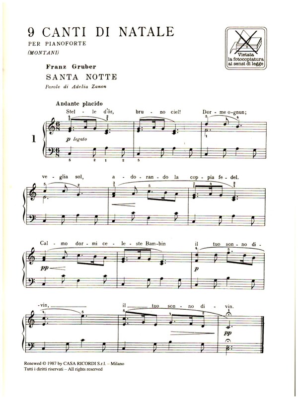 Montani, Pietro, ed Santa notte Piva Dormi dormi bel bambin Adeste fideles Pastori e pastorelle Tu scendi dalle stelle L'Albero di Natale Venite bambini O Sanctissima