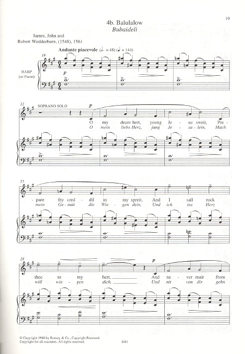 | Untertitel: | for mixed chorus and harp score (= vocal score, en/dt) |