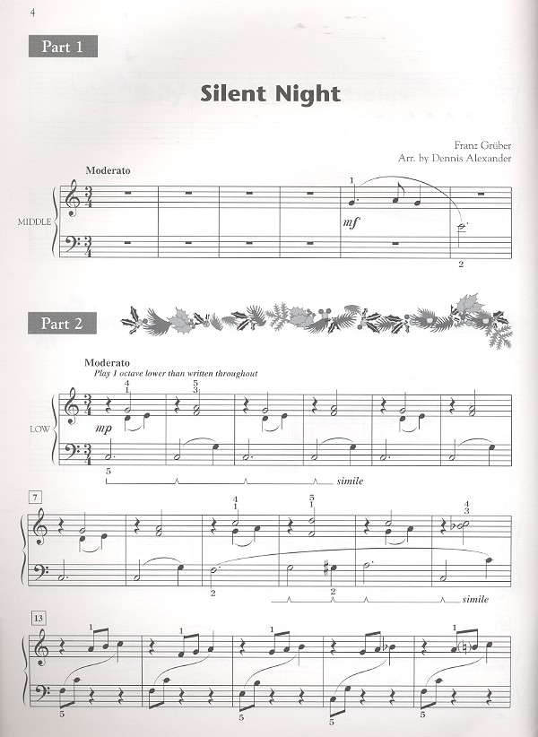 6 Late Elementary Christmas Favorites Angels we have heard on High It came upon the Midnight clear Jolly old Saint Nicholas Silent Night Up on the Housetop We three Kings of Orient are