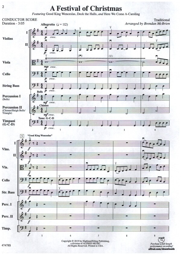 Highland/Etling String Orchestra McBrien, Brendan, arr. Featuring: Good King Wenceslas / Deck the Halls / Here We Come A-Caroling