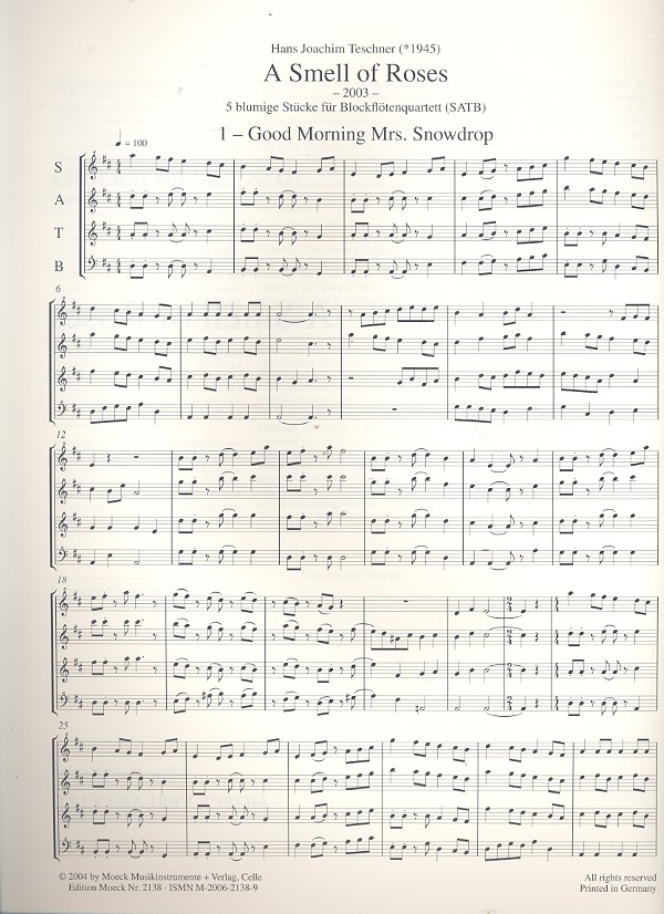 | Untertitel: | für Blockflötenquartett (SATB) Partitur und Stimmen |