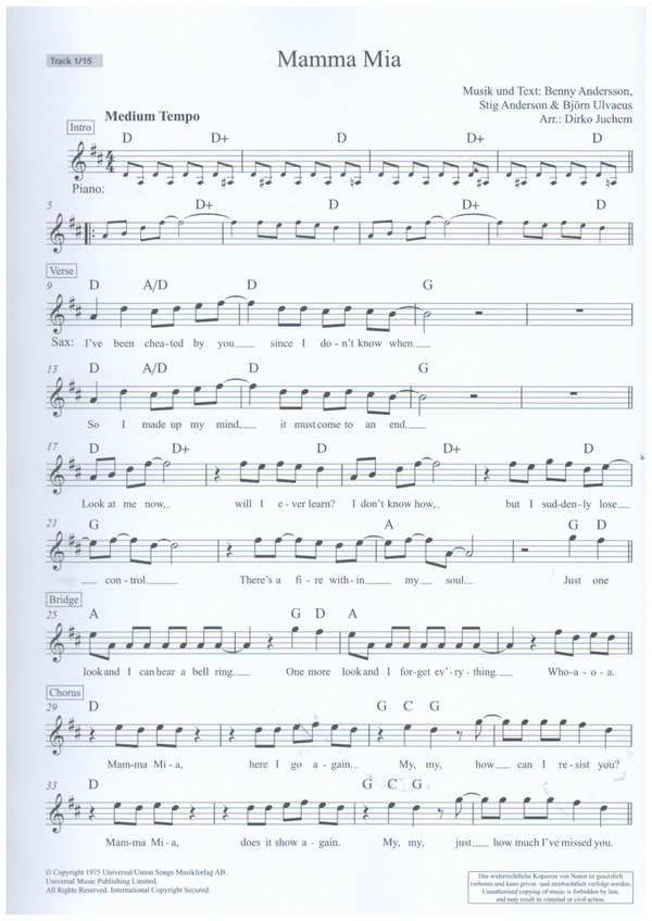 Schott Saxophone Lounge The 14 Most Famous Songs By ABBA Inhalt: Mamma Mia S.O.S. I Have A Dream Super Trouper Waterloo The Winner Takes It All I Do, I Do, I Do, I Do, I Do Money, Money, Money Chiquitita People Need Love Dancing Queen Summer Night City Thank You For The Music Happy New Year