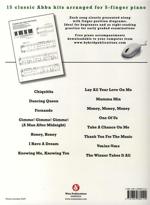 15 classic Hits Easiest 5-Finger Piano Collection Chiquittita Danving Queen Fernando Gimme gimme gimme (A Man after Midnight) Honey Honey I have a Dream Knowing me knowing you