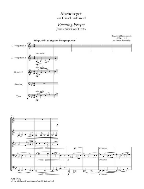 Scheiwiller, Simon, arr. aus der Oper Hänsel und Gretel Abends will ich schlafen gehn