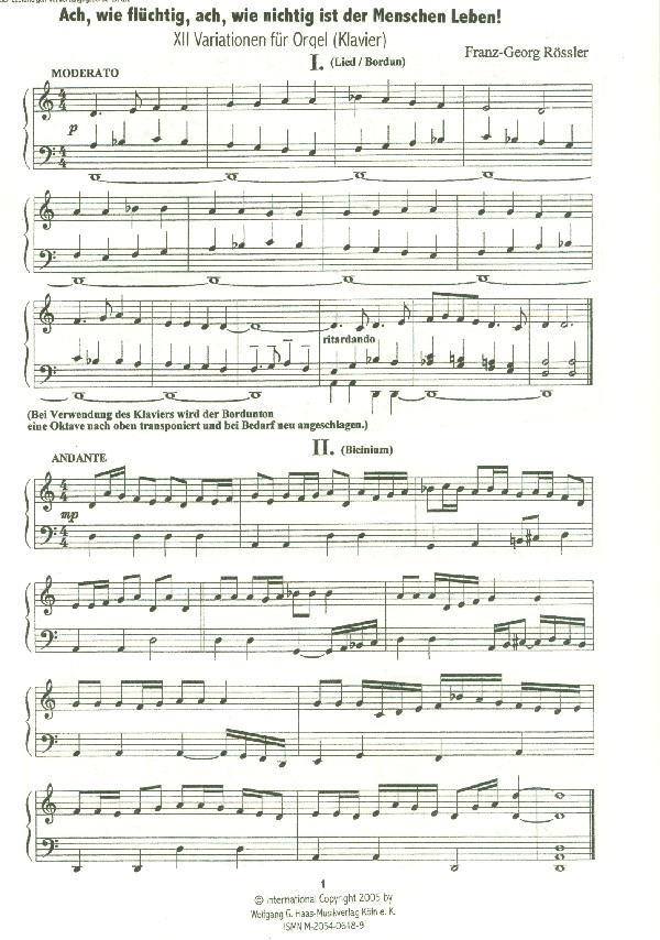 Ach wie flüchtig...RöWV156 für Orgel (Klavier)
