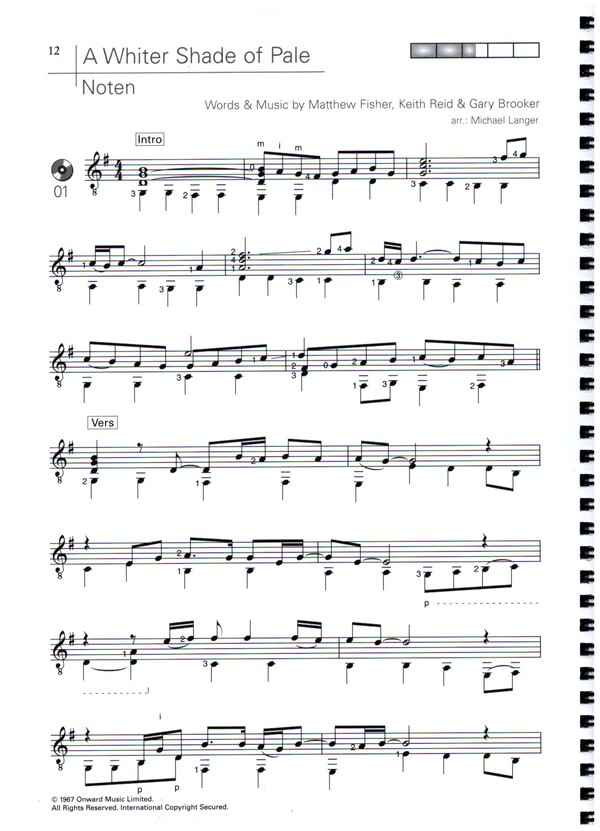 In fünf Bänden werden je 20 Welterfolge umfassend 'gitarristisch' aufbereitet. Alle Songs sind für Gitarre solo arrangiert und in Notenschrift und Tabulatur notiert. Zusätzlich gibt es, wie gewohnt, zu jedem Titel eine kurze Geschichte, Vorschläge zur Strumming- und Picking-Begleitung sowie den kompletten Text mit Akkorden. Auf der CD sind alle 20 Songs vollständig als Soloversion eingespielt. A whiter Shade of Pale Budapest Faded Forever young Get back Havana Hold back the River I feel it coming I took a Pill in Ibiza Love me like You do Love yourself May You never Perfect Say You won't let go Se You again Somewhere out there Stay with me Take on me Whinking out loud We don't talk anymore