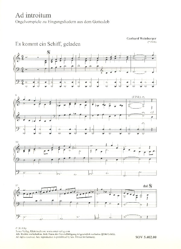 Choralvorspiele zu Eingangsliedern aus dem Gotteslob ADVENT: Es kommt ein Schiff, geladen Komm, du Heiland aller Welt Kündet allen in der Not Macht hoch die Tür O Heiland, reiß die Himmel auf Wachet auf, ruft uns die Stimme Wie schön leuchtet der Morgenstern WEIHNACHTEN: Es ist ein Ros entsprungen Hört, es singt und klingt mit Schalle In dulci jubilo Lobt Gott, ihr Christen alle gleich Nun freut euch, ihr Christen Singen wir mit Fröhlichkeit Vom Himmel hoch, da komm ich her Zu Bethlehem geboren PASSION: Aus tiefer Not schrei ich zu dir O Mensch, bewein dein Sünde groß Wir danken dir, Herr Jesu Christ OSTERN Christ ist erstanden Das ist der Tag, den Gott gemacht Freu dich, erlöste Christenheit Gelobt sei Gott im höchsten Thron Ist das der Leib, Herr Jesu Christ Jesus lebt, mit ihm auch ich Wir wollen alle fröhlich sein PFINGSTEN: Der Geist des Herrn erfüllt das All Komm, Heilger Geist, der Leben schafft Komm, Schöpfer Geist, kehr bei uns ein Nun bitten wir den heiligen Geist