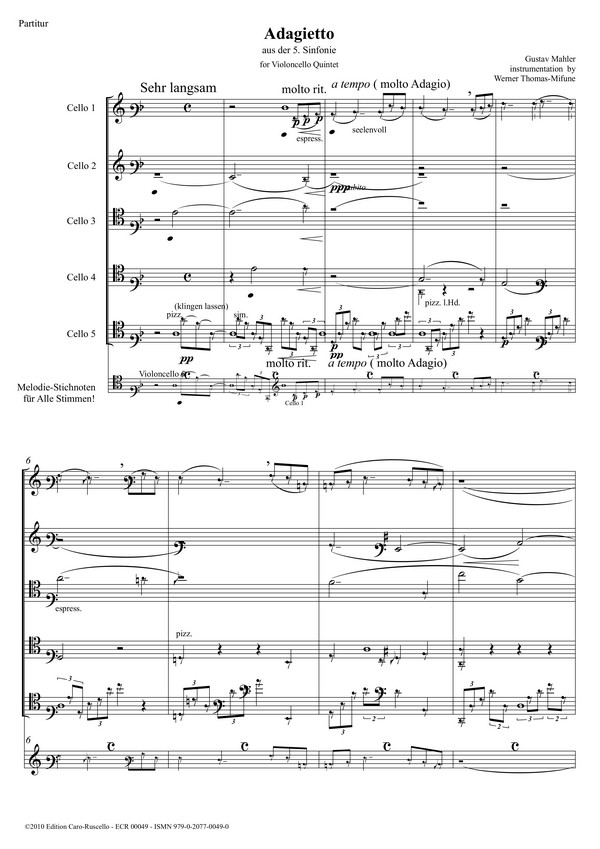 Mahler, Gustav - Adagietto aus der 5.Sinfonie - Instr.: Thomas-Mifune, Werner - Violoncello-Quintett