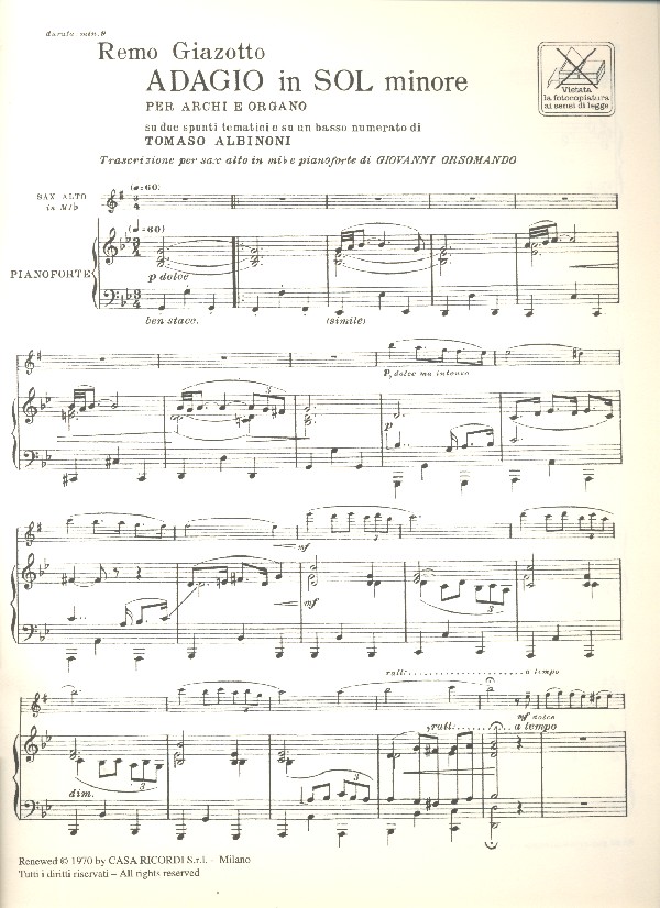 | Untertitel: | Albinoni per alto sax e piano |
