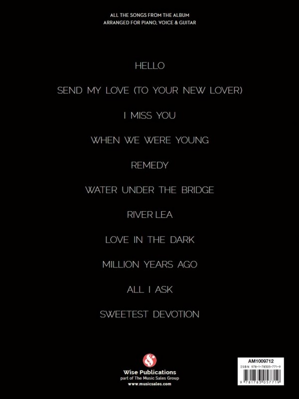 Hello Send My Love (To Your New Lover) I Miss You When We Were Young Remedy Water Under The Bridge River Lea Love In The Dark Million Years Ago All I Ask Sweetest Devotion