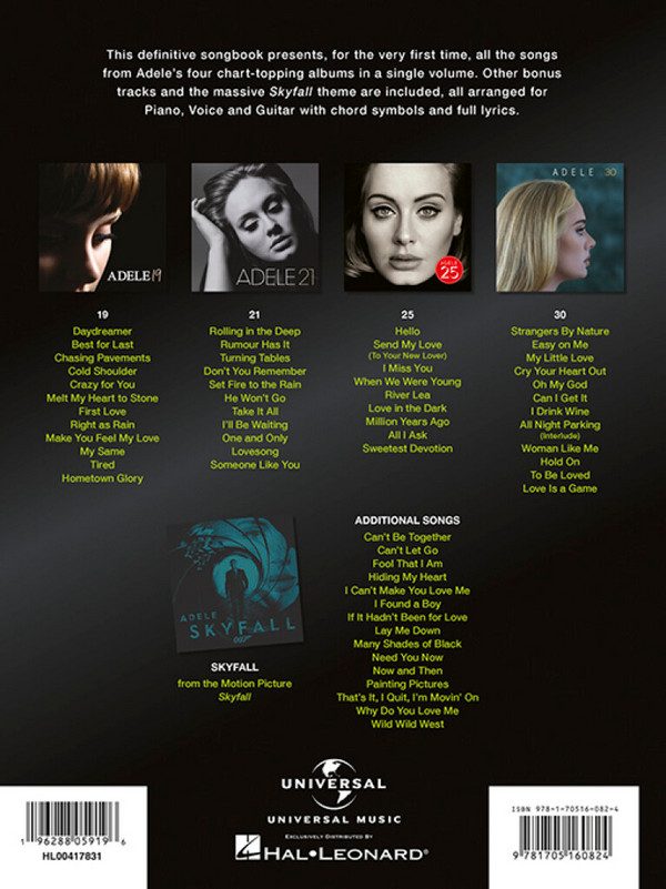 ersetzt AM1011802 Daydreamer Best For Last Chasing Pavements Cold Shoulder Crazy For You Melt My Heart To Stone First Love Right As Rain Make You Feel My Love My Same Tired Hometown Glory Rolling In The Deep Rumour Has It Turning Tables Don't You Remember Set Fire To The Rain He Won't Go Take It All I'll Be Waiting One And Only Lovesong Someone Like You Hello Send My Love (To Your New Lover) I Miss You When We Were Young Remedy Water Under The Bridge River Lea Love In The Dark Million Years Ago All I Ask Sweetest Devotion Skyfall Can't Let Go Fool That I Am Hiding My Heart I Can't Make You Love Me I Found A Boy If It Hadn't Been For Love Lay Me Down Many Shades Of Black Need You Now Now And Then Painting Pictures That's It, I Quit, I'm Movin' On Why Do You Love Me