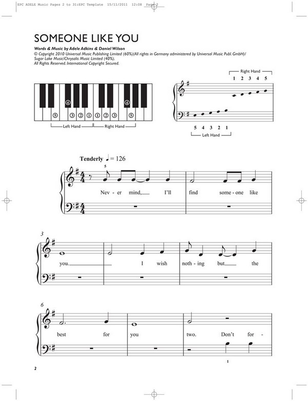 Easiest 5-Finger Piano Collection 15 Adele Songs Chasing Pavements Cold Shoulder Crazy for You Daydreamer Hometown Glory I'll be waiting Make You feel my Love Melt my Heart to Stone One and only Right as Rain Rolling in the Deep Set Fire to the Rain Someone like You Tired Turning Tables