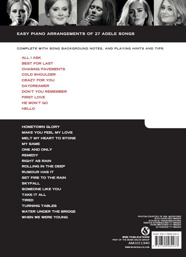 Replacement for AM1004036 27 Adele Songs All I ask Best for Last Chasing Pavements Cold Shoulder Crazy for You Daydreamer Don't You remember First Love He won't go Hello Hometown Glory Make You feel my Love Melt my Heart to Stone My same One and only Remedy Right as Rain Rolling in the Deep Rumour has it Set Fire to the Rain Skyfall Someone like You Take it all Turning Tables Water under the Bridge When we were young