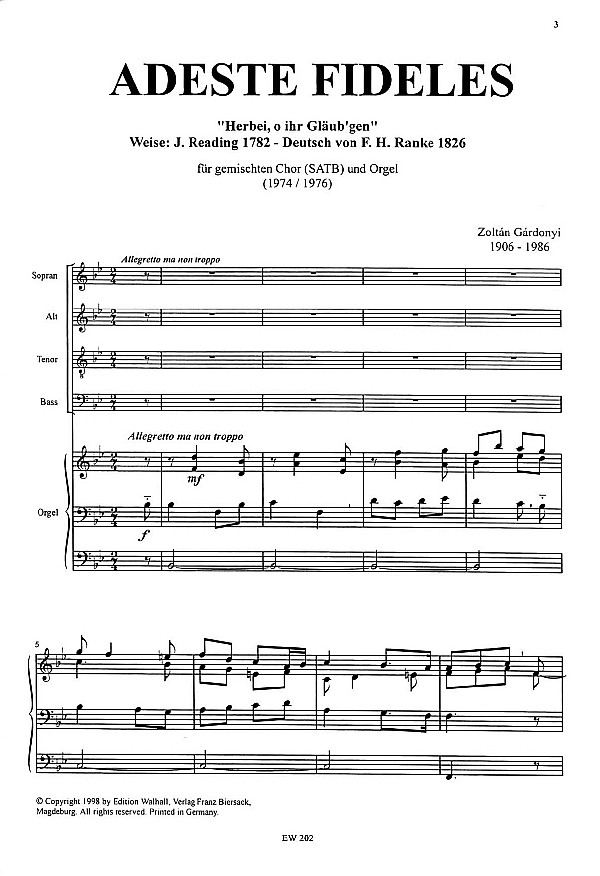 Gárdonyi, Zoltán, arr. Herbei o ihr Gläubigen