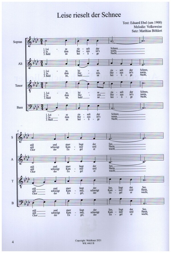 Leise rieselt der Schnee Süßer die Glocken nie klingen Uns wird erzählt Vor Weihnachten Weil Gott in tiefster Nacht erschienen Wir haben ein Kindlein gesehn Wir sagen euch an den lieben Advent Wo steht in dieser dunklen Nacht Zur stillen Nacht