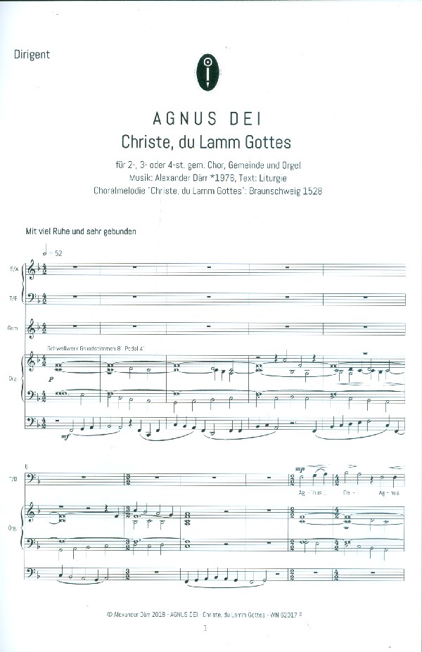 | Untertitel: | für gem Chor (SAM/SATB), Gemeinde und Orgel Partitur (la/dt) |