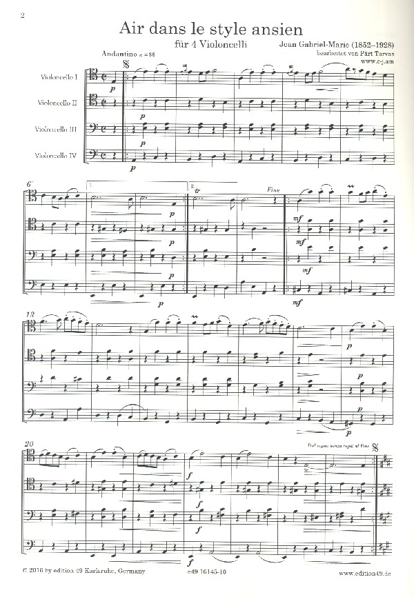 | Untertitel: | für 4 Violoncelli Partitur und Stimmen |